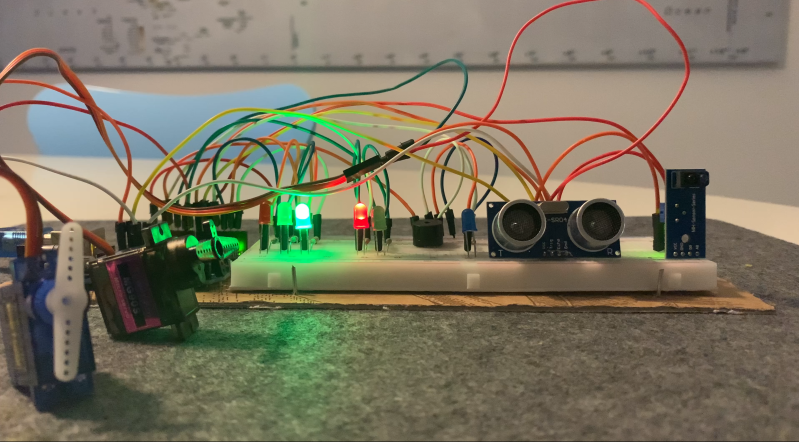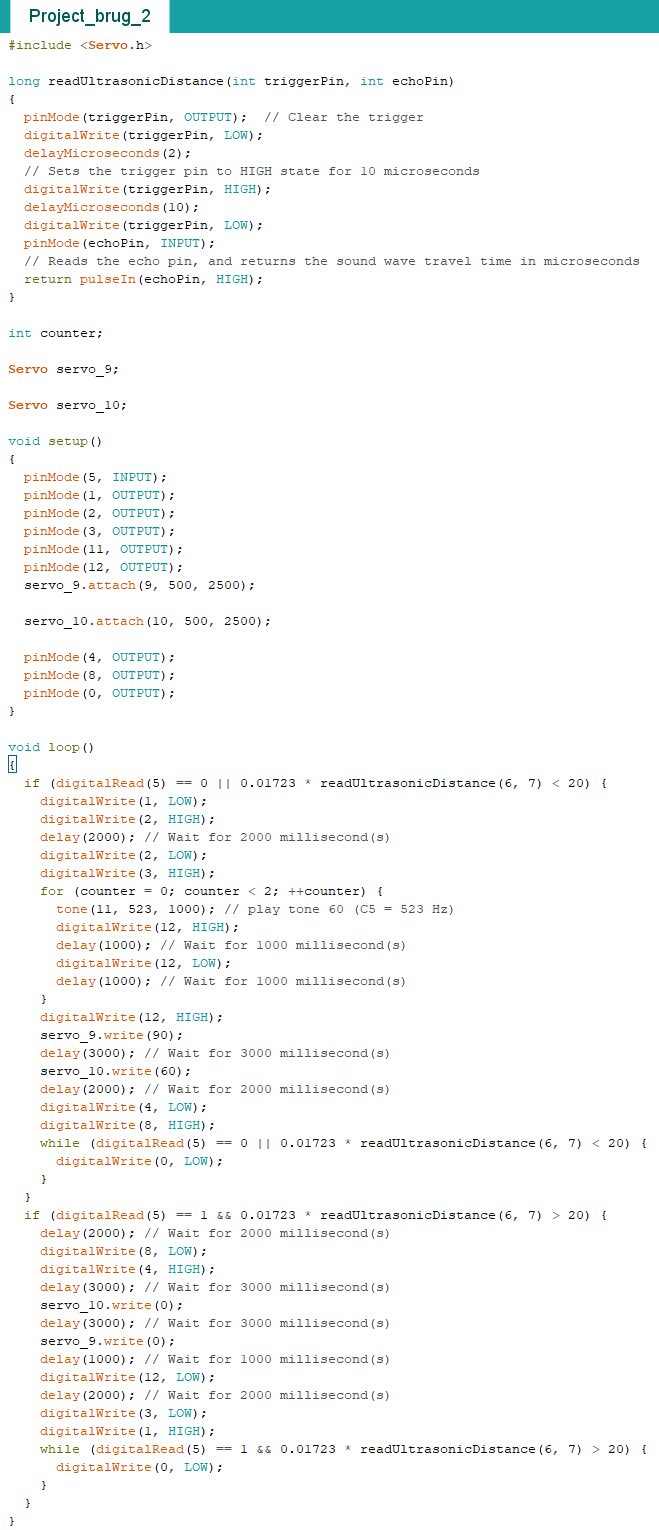 2x Servo (Motortje) 1x Ultrasone Afstandssensor.