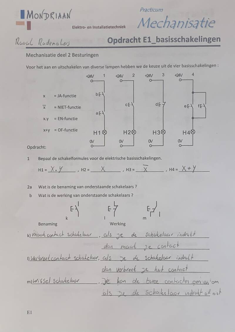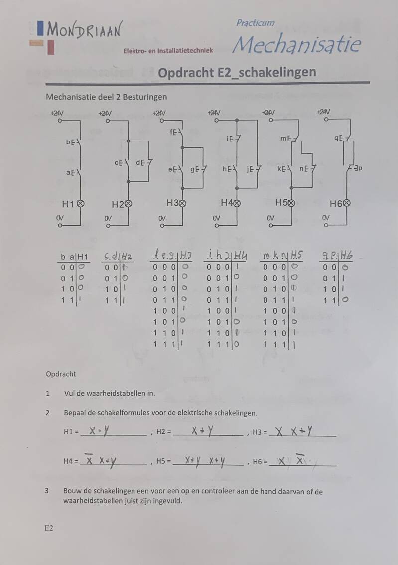 Teken opdracht E1 & E2 over in Fluidsim