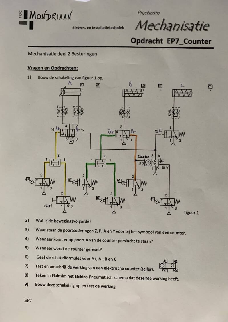8. Teken in fluidsim het Elektro-Pneumatische schema dat dezelfde werking heeft.