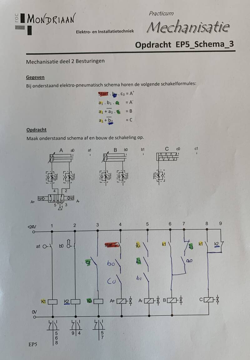 1. Bouw het elektro-pneumatiek schema op en test de werking.